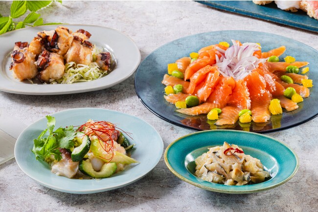 今年は、北海道北西部の日本海に面し、豊かな自然環境が山海の恵みをもたらす「留萌(るもい)」エリアをピックアップ。「コンパス」シェフ高木が自ら現地を訪れ、生産者さまと直接ふれあいながら海の幸、山の幸を厳選してまいりました。数の子の加工生産量日本一の留萌からは、プチプチとした食感の数の子と甘く煮たニシンの相性がたまらない「留萌産数の子入りニシンの棒寿司」や、増毛(ましけ)で水揚げされた新鮮なサクラマスを使用した「増毛産サクラマスのマリネ」に加え、香り豊かな小麦の風味と強いコシが特徴の珍しい麺“ルルロッソ”が楽しめる「留萌産ルルロッソのつけ麺」をご用意。国内有数の水揚げ量を誇る留萌エリア、羽幌(はぼろ)町の甘海老を使った濃厚なオリジナルスープにからめてお楽しみください。更に「羽幌産甘海老とアイヌネギのパエリア」は新鮮な甘海老からとったスープでお米を炊き上げた贅沢な一品。その他、低糖質、高たんぱくで美しい赤身が自慢の「白老(しらおい)産和牛“ピリカルージュ”の石焼ステーキ」や、甘みのある蟹といくらを同時に味わえる「蟹いくらご飯」、香ばしさが食欲をそそる「北海道産ほたてのバター焼き」、「本ずわい蟹」など、北海道の人気メニューが勢ぞろい。デザートには、北海道生乳100%純生クリームを使用した「赤肉メロンショートケーキ」、増毛産リンゴジュースのゼリーもご用意いたしました。日本最北端の酒蔵「国稀酒造」の日本酒や、余市町のワインや焼酎、夕張メロンスカッシュ等、お飲み物も多彩なラインナップで食を盛り上げます。横浜にいながら旅行気分を味わえる「夏の北海道フェア」。夏休みにご家族やお仲間と、北の大地の恵みを心ゆくまでお楽しみください。