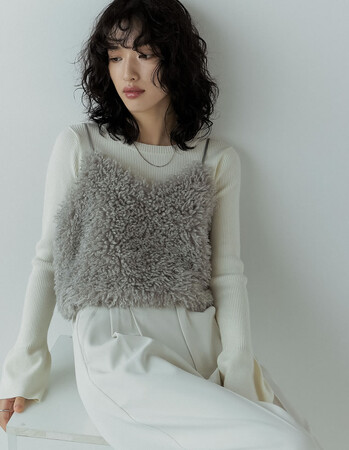 ふんわりとしたシーズンムード高まる「チベットラムフェイクファー短丈ビスチェ」
