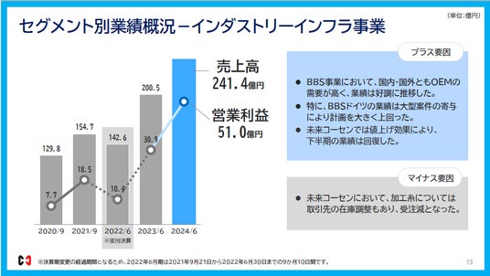 以上の結果、当事業の売上高は24,145百万円、営業利益は5,101百万円となりました。