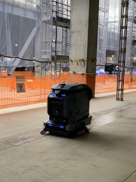 建設現場で稼働する床洗浄ロボット KIRA B 50