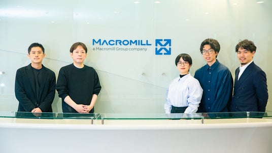 左から、アイスリーデザインの佐々木、マクロミルのUX&プロダクトデザインユニット ユニット長の森本さん、アイスリーデザインの岩本、原田、今野