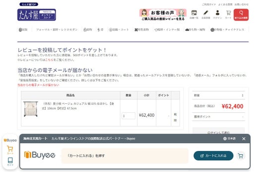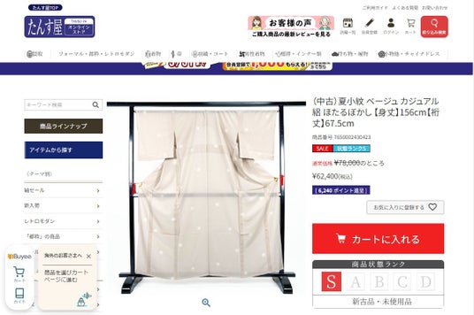 リユース着物たんす屋のECサイト「たんす屋オンラインストア」におきまして、2024年5月15日から、海外のお客様の購入利便性を向上させるため「Buyee」を導入致しました。これにより、手軽に海外からのご購入ができるようになりました。
