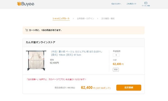海外アクセス時の表示(国内アクセスではBuyeeカートは表示されません)