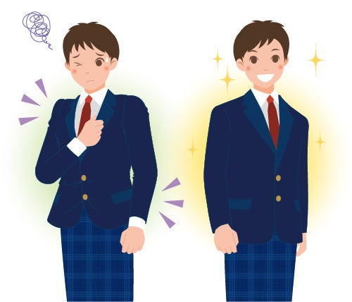 小学校高学年から中学校の期間は、子どもの「成長期」にあたり成長が著しい時期でもあります。このことから中学校の入学時に着ていた制服を秋になって着ようとしたら、小さくなっていて(子どもが成長して大きくなって)着られなくなったということもあるようです。そのようなサイズアウトを少なくするために、成長を予測して入学時には少し大きめの制服を購入したり、『成長機能』※が備わった制服を選んだりするなどの対策があります。