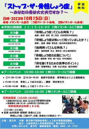 ・骨密度測定(午前10時~午後4時) ※当日、午前10時より整理券を配布(先着180名)