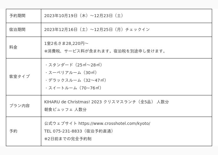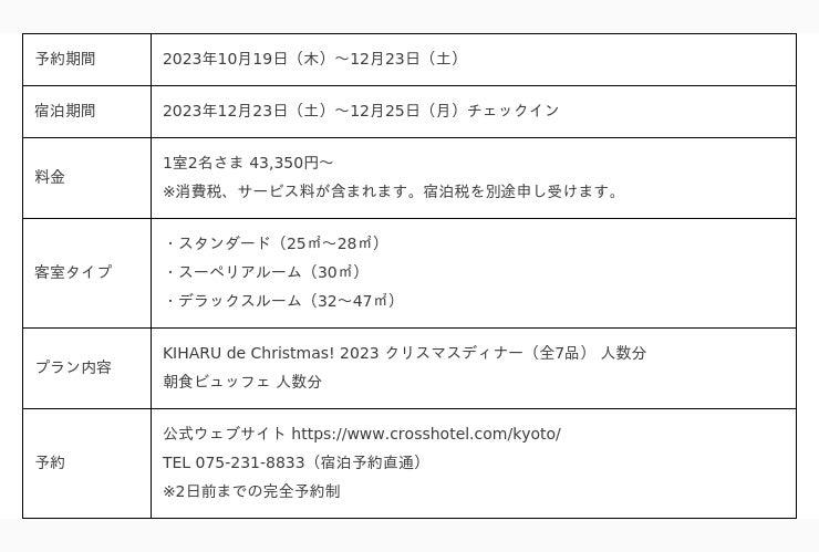 ■ KIHARU de Christmas! 2023 クリスマスディナー付宿泊プラン 概要
