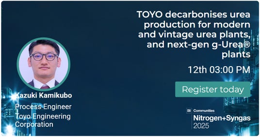 Toyo Engineering Corporation (President and CEO Eiji Hosoi, TOYO) is pleased to announce its participation in the CRU Nitrogen+Syngas Expoconference 2025, taking place in February 10-12, 2025, in Barcelona, Spain. Three TOYO representatives are scheduled to present at the conference.