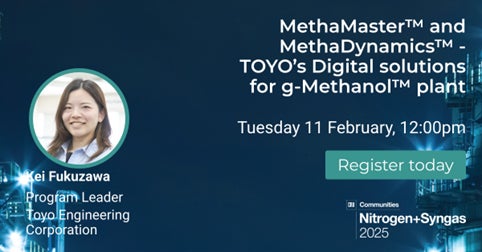 東洋エンジニアリング株式会社(取締役社長 細井 栄治、以下TOYO)は、2月10日(月)~2月12日(水)にスペイン、バルセロナで開催される「CRU Nitrogen+Syngas Expoconference 2025」に出展します。 以下の3名が発表する予定です。