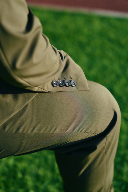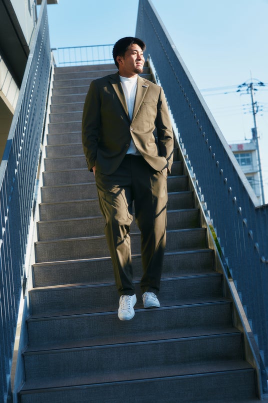 新スーツのカラーは、落ち着きと力強さを兼ね備えた濃いオリーブカラーを採用し、サステナブルな理念を象徴するデザインに仕上げています。