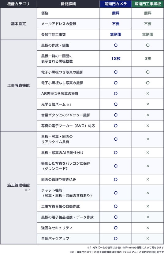 ■「蔵衛門工事黒板」と『蔵衛門カメラ』の機能比較