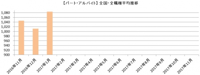 主婦に特化した求人サイト『しゅふJOBパート』(事業運営者:株式会社ビースタイル/本社:東京都新宿区、代表取締役:三原邦彦)は、掲載された求人情報の時給データから算出した『平均時給』の2017年1月分を集計しました。