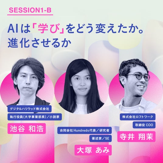 AIは「学び」をどう変えたか。進化させるか生成AIの登場により、「学び」のあり方やプロセスが大きく変化しています。教育・研究・自己学習・教養など、広義の「学び」を大学や企業はどう捉え直し、進化させていけるか。デジタルと創造性を融合した実践に取り組むデジタルハリウッド大学 事業部長・池谷和浩氏、『#100日チャレンジ 毎日連続100本アプリを作ったら人生が変わった』著者の大塚あみ氏、ロフトワークのAI活用をリードする寺井翔茉が登壇。実践事例を交え、AI時代の学びのヒントを探ります。