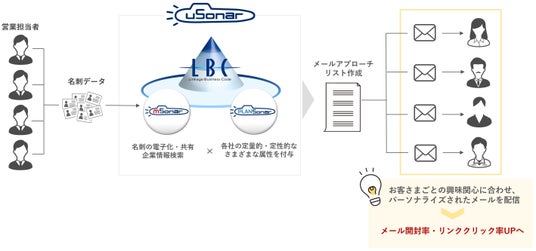 1990年の設立当初より、法人間取引(BtoB)データ関連の課題に対応すべく、日本最大級の法人企業データベース「LBC」を独自に構築・維持してきました。高品質で正確なデータを収集整理する独自の技術と、人工知能など最先端の知見も駆使し、より精確なビジネス戦略の立案を支援するため、顧客データ統合ソリューション「ユーソナー」を提供しています。