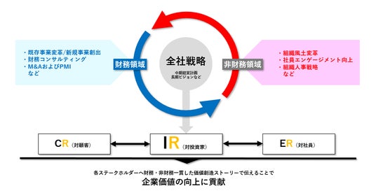 本プロジェクトチームは、本質的なIR活動を、財務領域と非財務領域の企業活動が一貫した成長戦略やストーリーのもとで推進され、持続的に成果と共感や期待を生み、そのことが的確に社内外のステークホルダーに伝わり、企業価値の向上につながる活動と捉えています。