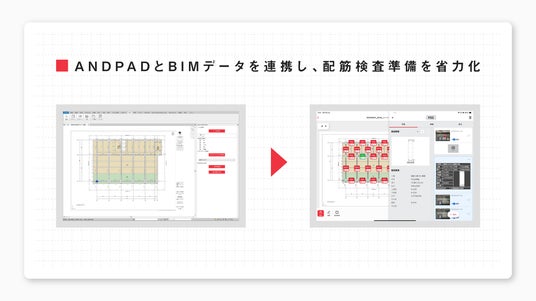 これまで、アンドパッドと大成建設は施工現場でのBIM活用に関する取り組みを実施しています※2。今回は新たに、上記の課題を解決するためにBIMとのデータ連携が可能な「配筋検査」機能※3を開発します。