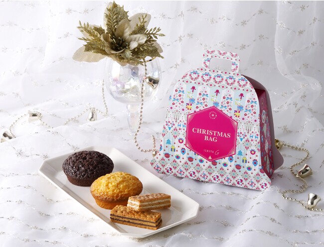 クリスマスモチーフが描かれたベル型の箱に、人気商品「アイガトー」と「ザクミルフィーユ」を詰め合わせたアソートバッグ。