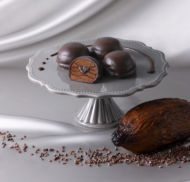 ベルギー産チョコレートを使用したフィリングを包み、さらにビターチョコレートでコーティングした手のひらサイズのショコラバウムクーヘン。