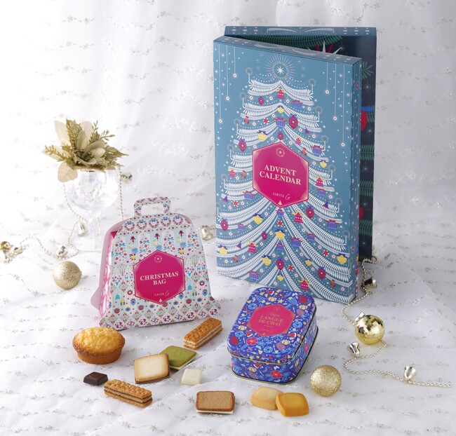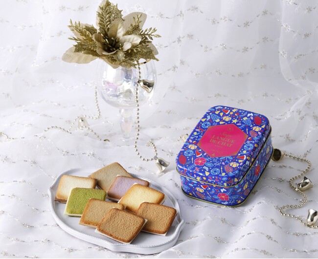 クリスマスモチーフが輝くようなデザインの缶に定番商品サク ラング・ド・シャを詰め合わせた[サク ラング・ド・シャ クリスマスアソート8枚入]や、クリスマスモチーフが描かれたベル型の可愛らしい箱に人気商品「アイガトー」と「ザク ミルフィーユ」が入った[クリスマスバック]もクリスマスまでの限定販売いたします。
