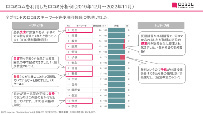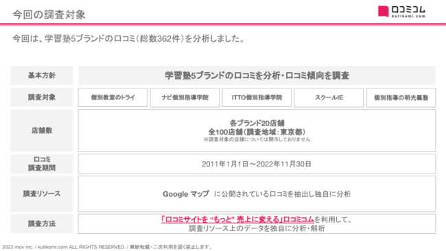 学習塾5ブランド100店舗の口コミ分析レポート最新版