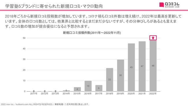 ・口コミ件数はコロナ禍も増え続け、2022年は過去最多を更新していること