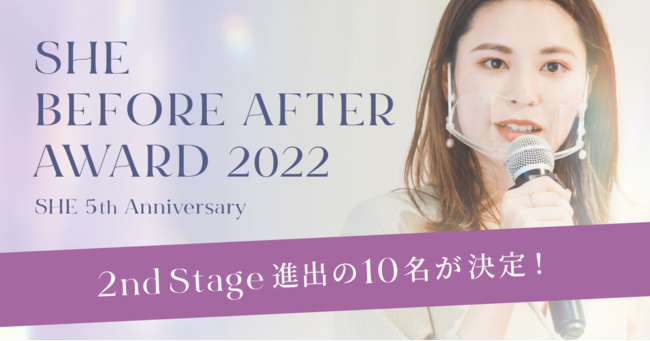 受講生の中からエントリーを募集し、応援投票により1st Stage/2nd Stageを通過した5名にはFinal Stageとなる4月16日(土)の「SHE BEFORE AFTER AWARD 2022」の舞台に登壇していただきます。