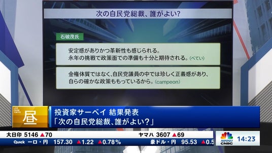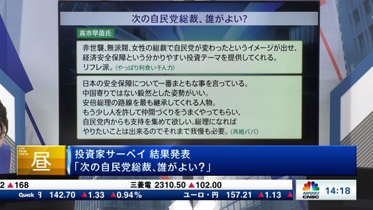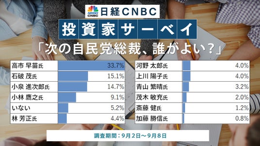 日経CNBC 投資家サーベイ「次の自民党総裁、誰がよい?」
