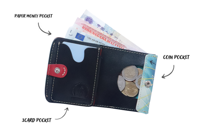 手のひらサイズながらお札は約10~20枚・コインは約20~30枚・カードポケット2箇所:約6~9枚。必要なものは全て入ります。
