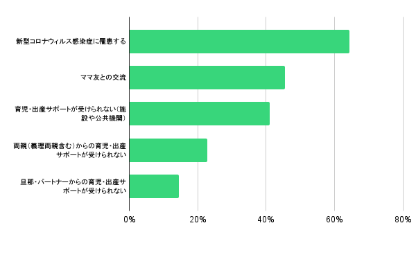 ■妊産婦が抱える不安、上位3つに「コロナ罹患・ママ友との交流・公共機関の支援」が挙がる