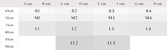 ブラSize:アンダー65cm~90cm、カップA~Hに対応した14サイズ