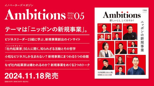 Ambitions Vol.5のテーマは「新規事業」。最新号では、企業内で新たな事業を創出する取り組みやその担い手にフォーカスします。