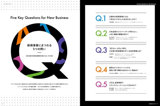 新規事業にまつわる5つの「問い」を紐解く分析企画も。「企業内の新規事業からは、小粒なビジネスしか生まれないのか?」「日本企業からイノベーターが育たない。 人材・組織の課題は何か?」など、新規事業に関わる疑問を徹底解説します。