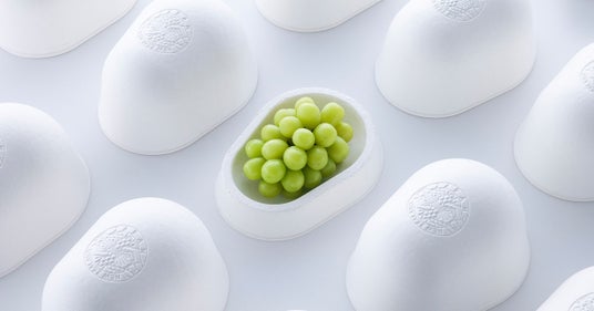 本パッケージの制作にあたり重視したことは、高級感を演出するための装飾的なデザイン要素を極力省き、ピュアで上質な『極旬』 のぶどうの魅力を最大限に伝えることでした。パルプモールドを使用することで、ぶどうの形に沿った3Dの造形自体をデザインとし、グラフィックの要素を最小限に抑えました。手触り感やパルプの模様、ロゴのエンボスの形状が一点一点異なるのは、まさにぶどうが一房一房それぞれに異なる個性を有していることと呼応しています。