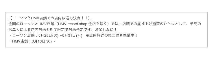 さらに、Loppi・HMV限定 『テレビ千鳥』予約限定グッズの予約開始に合わせ、HMVでは『テレビ千鳥』DVDフェアも8月22日(土)より開催!対象商品を購入いただいたお客様に先着で、HMV限定の番組ロゴステッカーをプレゼントいたします。