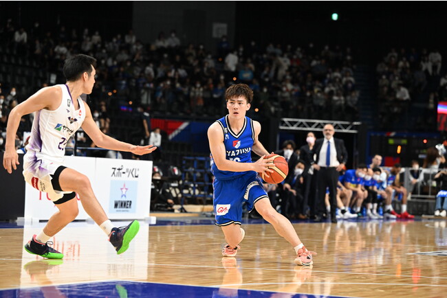 個人技からのバスケットカウント、連続3Pシュートを含む、このQだけで19得点を稼ぎ出す活躍で、残り32秒3点差となるフリースローを決め勝負を決定付けたかと思った直後、山形に起死回生の3Pシュートを決められてしまい、オーバータイムへ突入。