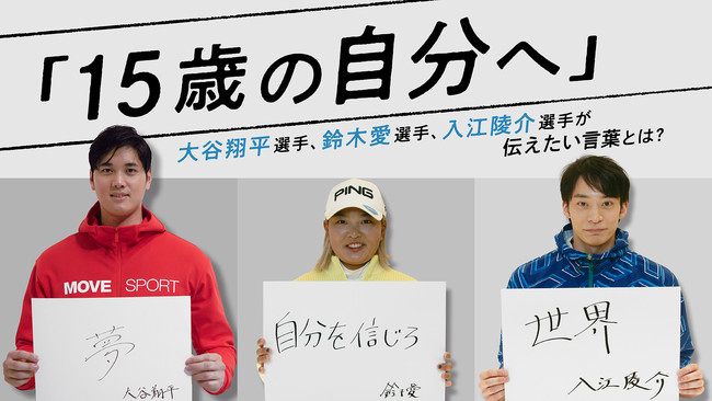 動画では、「Team DESCENTE」のアンバサダーであり、世界を舞台に活躍する大谷翔平選手(野球)、入江陵介選手(水泳)、鈴木愛選手(ゴルフ)の3名が、進路や将来への不安など、悩み多き自身の15歳の頃を振り返り、当時感じていたこと、悩んだこと、また、現在の自分から15歳の自分へ言ってあげたい言葉などを正直な気持ちで語っています。