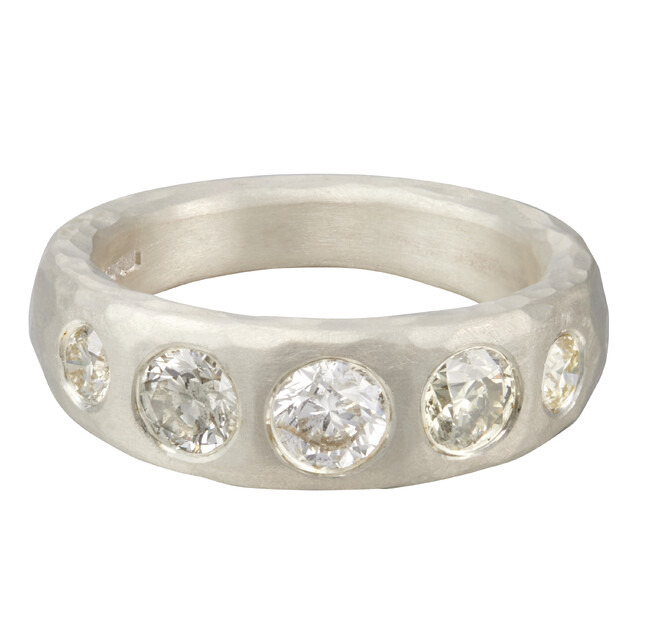日本ではバーニーズ ニューヨークのみのお取扱いとなる英国 ロンドン発のファインジュエリーブランド<MALCOLM BETTS(マルコム ベッツ)>。 “ハンマリング”という伝統的な技法を用い、デザイナーの感性をモダンで魅力的なデザインに落とし込んだ<マルコム ベッツ>のジュエリーは、マットな質感と温かみのある風合いが特徴です。