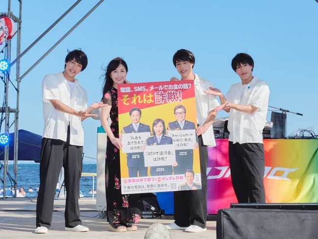 続けて、「皆さんもニュースで見たことがあるかもしれませんが、近年、『簡単にお金が稼げる』『時給がいいですよ』などの甘い言葉で若者を募集し犯罪に巻き込むケースが社会的にも大変問題になっています。 しかし、どのような理由があれ、これは立派な犯罪です。甘い誘いに乗らない様にしてください!みなさんで特殊詐欺の撲滅を目指しましょう!!」と訴えました。