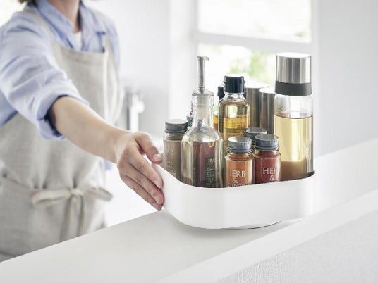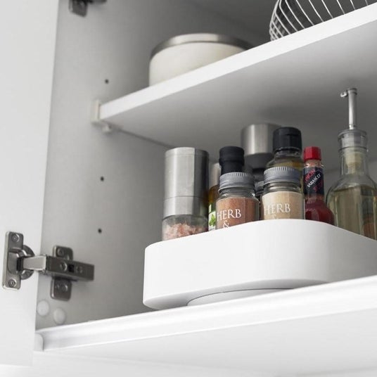 瓶など重い物を収納してもストレスなくスムーズに回転し、高い場所でも取り出しやすい。