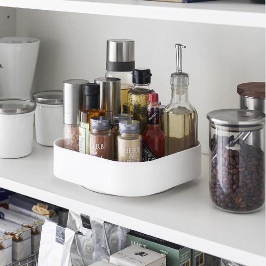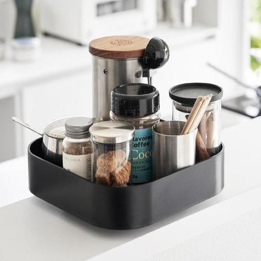 360°回転して取り出しやすく、縁に高さがあるので倒れにくい。