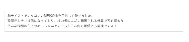 ■クリエイター:うらみ第二形態 / ボーカル:MEIKO