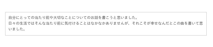 時の流れや生命移り変わりをテーマにした歌詞、物語の始まりを予感させる雄大でファンタジックなサウンドが素敵な1曲です。