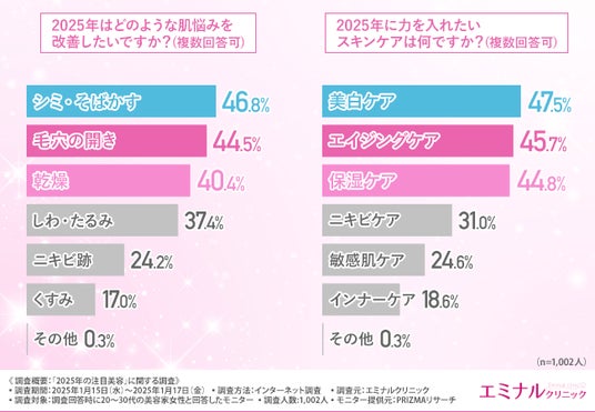 そこで今回、医療脱毛の「エミナルクリニック」は、美容家1,002人を対象に、「2025年最新美容」に関する調査を実施しました。