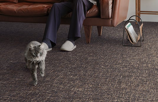 4.3mm厚の繊維系床材。メンテナンス性が良く滑りにくい。カーペットのようなやさしい踏み心地が特長。3柄収録。