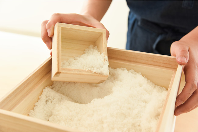 四季の塩は、四季折々の豊かな森の恵みが流れ込む山口県油谷湾の汽水域*の海水から 15 年以上塩づくりをする塩の匠、井上雄然(いのうえ ゆうぜん)さんが創り上げます。独自技法であるミネラル成分をまんべんなく混ぜ合わせる『天地返し』 により、身体に必要なその季節のミネラルを含む四季折々の塩が完成。旬の食材のうまみを ぐっと引き出します。* 汽水域:河川と海流がまじりあう水域のこと。