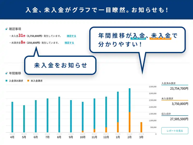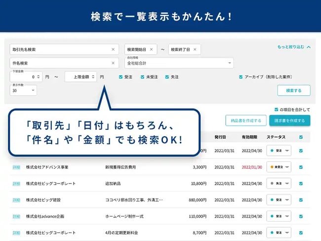 請求書や納品書を簡単な操作で作業時間を大幅にカットできます。