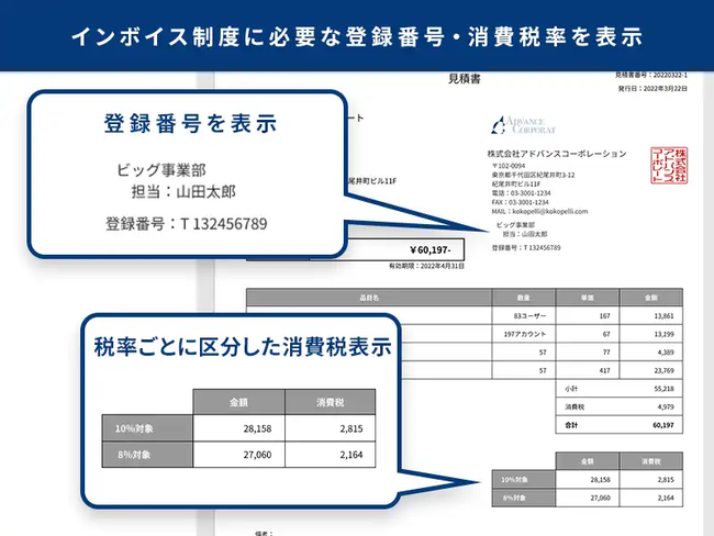令和5年10月から開始されるインボイス制度へ対応しており、税率別で消費税も表記されます。