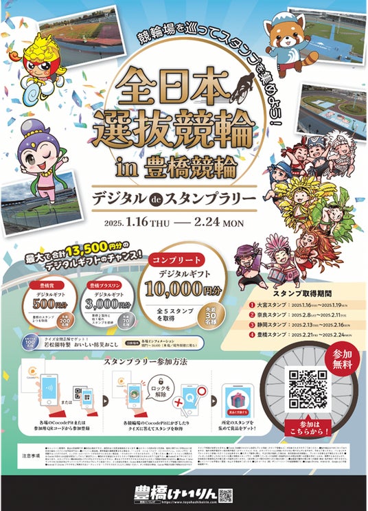 2025年2月21日~24日に豊橋競輪場で開催される『全日本選抜競輪』を盛り上げるため、競輪場周遊スタンプラリーを開催します!