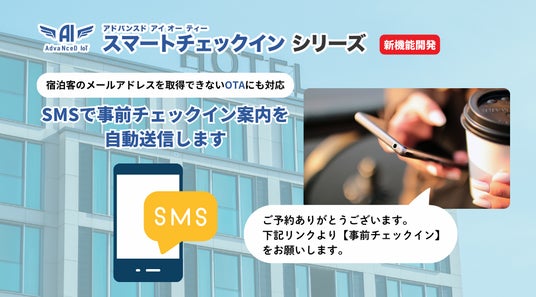 株式会社デバイスエージェンシー(大阪市西区)は、宿泊施設向けセルフチェックインシステム「AdvaNceD IoTスマートチェックインシリーズ」において、SMSによる事前チェックイン案内のSMS自動送信機能を8月2日、新たに開発・搭載いたしました。