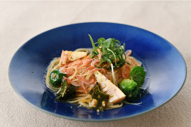 桜海老と竹の子・三陸わかめのアーリオオーリオ 甘夏の香り(税込価格 2,420円)