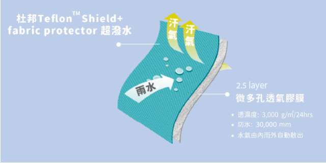 使用されている生地素材は水分を生地に付着させない超高水準の撥水性の生地。